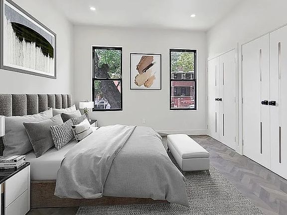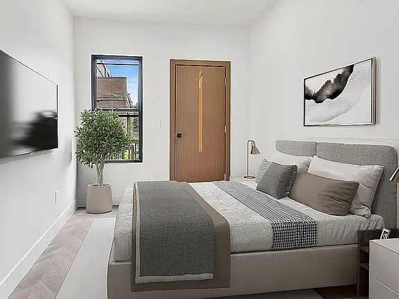 This meticulously renovated, move-in-ready brownstone apartment offers 3 spacious bedrooms and 2 bathrooms, including a luxurious master suite with a private bath and walk-in closet. Sunlight pours into the open-concept living and dining area, ideal for entertaining, while a chef's kitchen boasts floor-to-ceiling custom cabinetry, stainless steel appliances, and marble finishes. Unique details like an exposed brick wall in one of the bedrooms add character and warmth. Control your comfort year-round with brand new central air HVAC units, and enjoy the convenience of an in-unit washer and dryer. Step up to the private rooftop deck to take in stunning views of the cityyour own outdoor oasis in the heart of it all. Located near major transit, this apartment combines luxury and accessibility for an exceptional urban living experience.