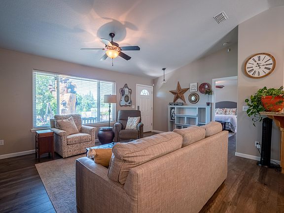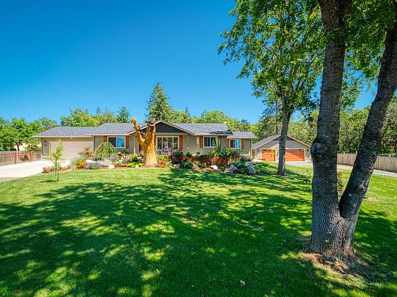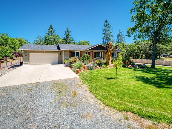 This beautiful ranch style home sits on a little over one acre lot for that country feel, but conveniently located 11 miles from Grants Pass and just minutes from I-5 north or south. Kitchen is recently remodeled with modern features, including, granite counter tops, laminate floors and newer stainless-steel appliances. The main living space offers soaring vaulted ceilings and open concept. Spacious primary suite with walk in closet, walk-in shower, and dual vanity. 3 bedrooms plus office or 4th bedroom, with an open floor plan. Enjoy your park like setting landscaped yard that has a one-of-a-kind carved bear art that greets you upon arrival. The backyard offers a covered patio to enjoy the outdoors with an established garden area and fruit trees. Fully fenced and gated with a recently built shop/three car garage. 1120sq ft. All information deemed reliable but not guaranteed, buyer do due their own due diligence. Scheule your appointment today.