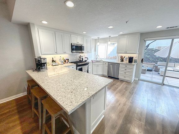 Fully Furnished Condo in the Vilamoura community of Rancho San Clemente available on a 3 month minimum term. Corner unit has bright living room with vaulted ceiling, kitchen has stainless steel appliances, stone counters. Sliding glass doors in the living room and kitchen open to your backyard. Direct access from dining area to the 2 car garage which includes electric car charger. Laundry in closet with LG washer and dryer included. 1/2 bath downstairs. Staircase leads to 3 bedrooms and 2 baths. Primary bedroom has a fireplace, balcony, walk-in closet. Villamoura Community has ocean view pool & spa. Close to Lobo Elementary School and large city park offering: Tennis, Basketball & Volleyball courts.