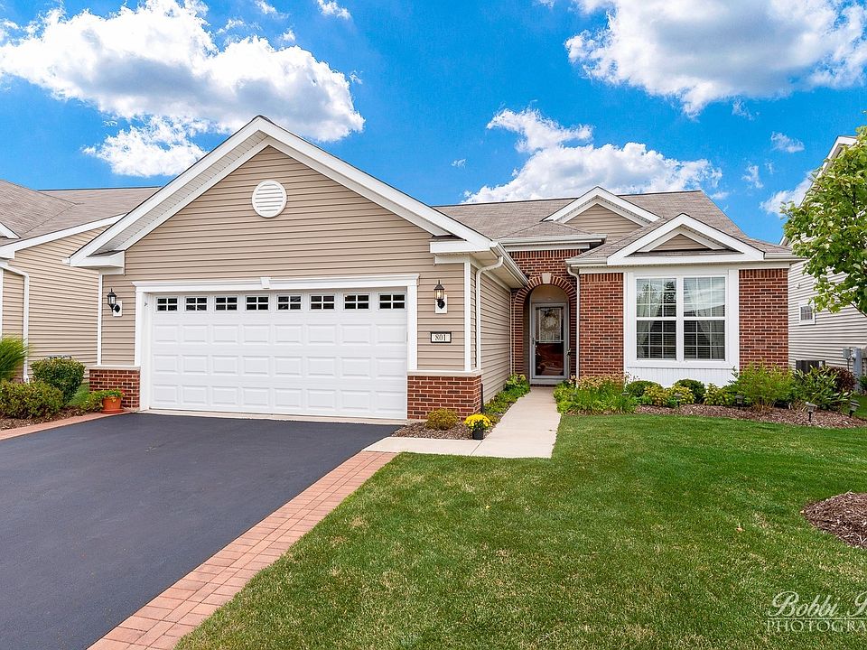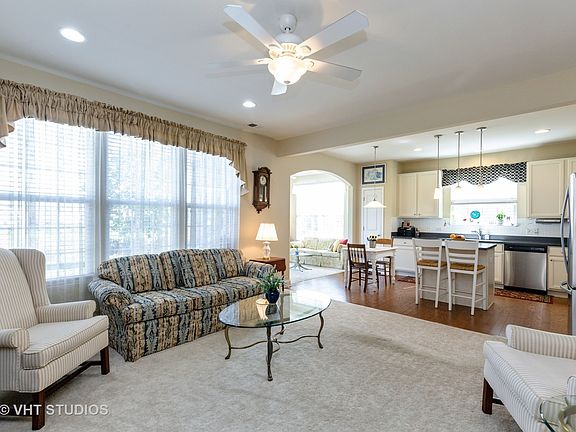 Buy a new 6 YR.NEW home on Labor Day Weekend! Here is a beautiful Montrose model with a wonderful open feel. It has an EXTENDED GARAGE with a Finished Attic space for STORAGE! Located on a PREMIUM LOT backing to Conservation area and across the street from park.Kitchen has corian counters, hardwood floors, white cabinets, Stainless Appliances, under cabinet lighting, beaded board backsplash, island that seats 2, and is entirely open to a beautiful SUNROOM with an Arched doorway. Den with glass doors. Patio extended with paver bricks and has a maple tree and a blue spruce in yard. Many beautiful perennials too. Edgewater is an over 55+ community, 1 person in house has to be 55+.Grass & Snow taken care of, gated community 24/7, Creekside Lodge has indoor and outdoor pool, fitness center, billiard room, library, and many activities. Lodge is in Phase 4 and is slowly opening up.