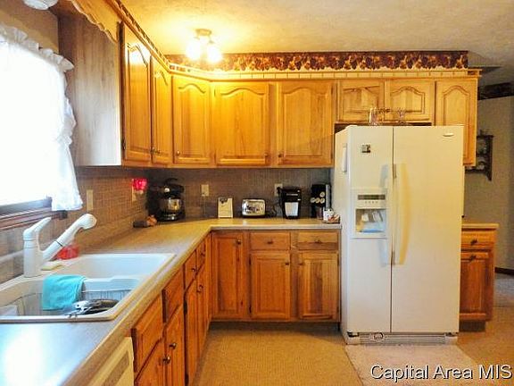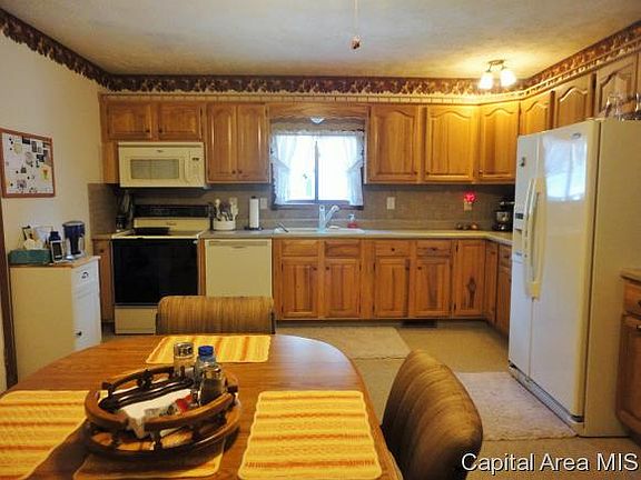 Well maintained home! Neat, clean & ready to move right in. Huge eat-in kitchen has oak cabinets w/ built-in spice rack, trash bin & corner cabinet, tile back splash, stove, above range microwave, dishwasher. Washer/dryer in kitchen in closet. Plenty of room for large table to host family/friends get-togethers. Nice size living room, good sized bedrooms, each has double closets. Updated bath w/ walk-in shower. Gas heat, central air. 2 1/2 car att. garage has cabinets for storage. Nice maintenance free vinyl front porch. Concrete drive, concrete patio, fenced back yard, corner lot.