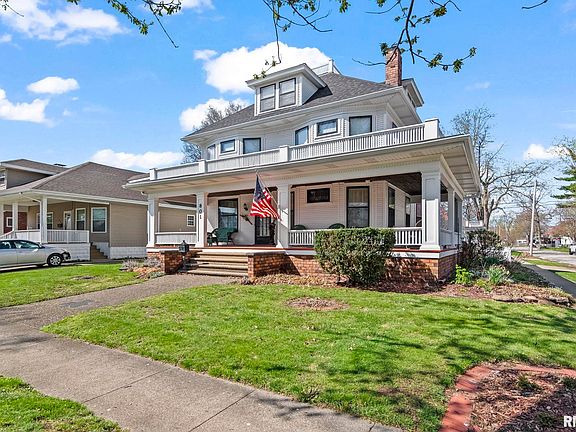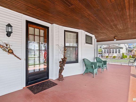 Beautifully Maintained 2 story home. 4 bedrooms 1 full bath on 2nd floor, 1/2 bath on main floor and full bath in Basement. Wonderfully restored original woodwork and built-ins. Hardwood mostly throughout. Corian Counter tops in kitchen. Functional Wood burning fireplace. Balcony on back of home. Gorgeous wrap around front porch, and very nice basement. Very nice Flagstone Patio area in back as well as back Deck. 2 car detached garage with bathroom. Nice Corner lot and New roof in 2024.