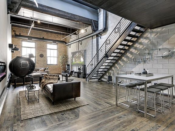 A true New York City style love in the vibrant North Loop neighborhood within walking distance to some of the best restaurants in Minneapolis. This open concept loft features exposed brick, wood beams and 15 to 35 foot soaring ceilings, refinished hardwood floors, exposed duct work and metal staircases. Enjoy a state of the art home theater system with a 120 inch screen- imagine the at home movie nights! Spend your summer nights on the private rooftop balcony overlooking the North Loop!
