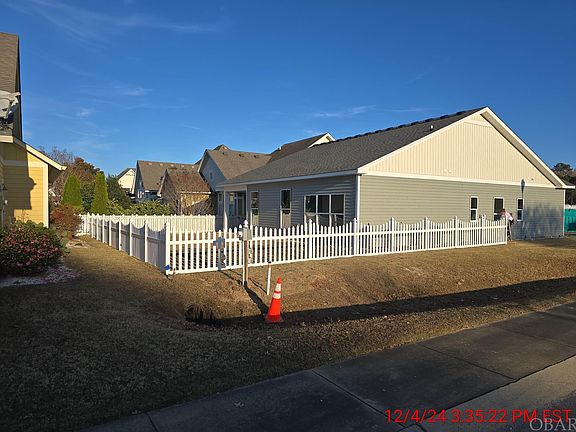 The Carrington plan beckons you to enjoy single level living at its finest. Attention to detail will capture you as you walk through the front door to soaring ceilings with decorative beams in the dining area and trey ceilings in the living and owner’s suite. The expansive kitchen is a chef’s dream with large eat-at kitchen island featuring solid surface counters, custom tile backsplash and stainless-steel appliances. The rear covered porch is perfect for entertaining or to enjoy the beautiful Outer Banks evenings. The private owner’s suite features a vaulted ceiling, large windows for natural light, walk-in closet, and luxury master bath with semi-custom tile shower. The secondary bedrooms are located at the front of the home for added privacy with shared hall bath. High end finishes include LVT flooring in the main living areas, kitchen, and laundry, tile flooring at full baths, solid surface counters in the kitchen and full baths, custom cabinetry, craftsman trim package, Delta plumbing fixtures, and designer lighting throughout. The attached two-car garage is perfect for your vehicles, beach toys, and storage needs. Come explore this beautiful home along with all the resort style amenities that Waterside Villages has to offer including gated entry, clubhouse, swimming pool, shallow water marina, community pier and picnic pavilion. Located ONLY 12 miles from the OBX beaches, Waterside Villages is in the heart of Grandy and near three public golf courses and only minutes to local shopping and restaurants. Visit www.watersidevillages.com for more information. Seller is licensed NC Real Estate Broker. Taxes based on land only. Buyer(s) to pay one-time capital contribution fee of $925.00 at closing.