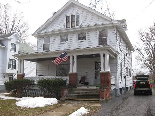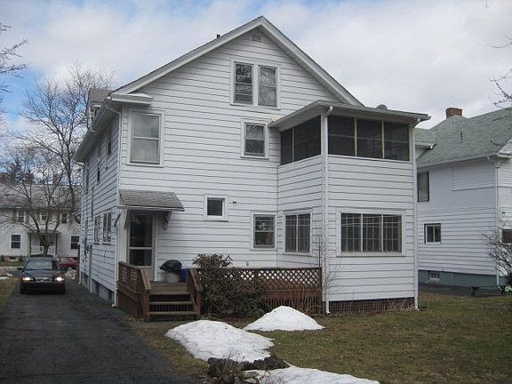 Really nice two unit in quiet neighborhood. First floor unit has unique woodwork with beamed ceilings and fireplace in living room. Second floor unit offers two bedrooms, living room, dining room and kitchen. Rents include heat, water and sewer. Tenants pay electric. Good two and a half car garage at rear of home. Home has access to river at rear. Heat is gas fired steam. Each unit has stove and refrigerator and also a nice enclosed porch on the rear. Taxes per appleminer.