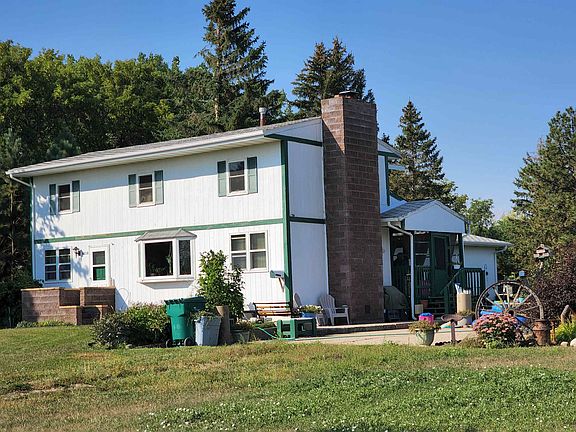 Country Living close to town. Nestled on 3.08 acres, this home has character and charm with 4 bedrooms 2.5 baths and an oversized attached 2 car garage. The main floor bedroom was built to handicap specifications complete with a ramp to the room, a roll in shower and a jetted tub. The bedroom itself is oversize to allow a wheelchair to maneuver around and still space for plenty of furniture. The family room is also nice sized, light and bright. The kitchen/dining area is rustic with cedar wall coverings, and a bay window. There is even a little coffee nook and a walk-in pantry. Off the kitchen is a cozy screened in porch. The living room is quaint with a wood burning fireplace. The upstairs features 3 nice sized bedrooms and another full bathroom with double sinks. As you enter the home from the attached oversized 2 car garage there is a ½ bath tucked away behind a barndoor. The garage has insulation and sheetrock (steel ceiling), a workbench area, in floor heat and a drain. There is a huge 80x60 garden area with a garden shed, Pear and apple trees, black crescent grapes, gooseberries, raspberries, and strawberries. Horses and chickens are also allowed. The home is on rural water but also has a working well to water the garden and yard. Call your favorite Realtor today and check out this unique property. Home is being sold as is and may not qualify for VA or First time home buyers.