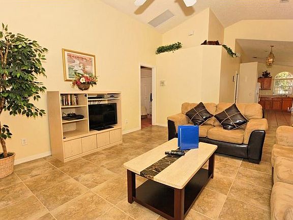 This beautiful 4 bedrooms 3 bath home is the perfect vacation home or short term rental. The community is an ideal location just 3 miles from Disney off 192 near all the restaurants and shopping for your ideal Disney vacation. The home features a heated screened pool with a privacy fence. The open floor plan and vaulted ceilings make it comfortable and spacious. Well maintained with new furnishings and tile floors games room pool heater water heater and more. This home has a successful rental history with future bookings in place.