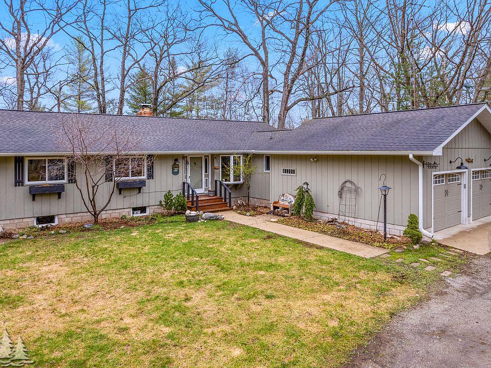 Escape to the ultimate river getaway! Offering 400 ft of blue-ribbon trout stream frontage along the renowned North Branch of the Au Sable River this stunning 3-bed, 3-bath ranch-style home sits on 9 private acres. Immerse yourself in nature's beauty with breathtaking views from the primary suite. The open layout, walk-out basement, and wet bar make entertaining a breeze. Enjoy a cook's kitchen, brand new geothermal heating, and a Generac automatic generator for year-round comfort. Plus, a charming 1-bed, 1-bath apartment for extra income or overflow guests. Storage is a breeze with an attached 2-car garage and two sheds, one for river gear. Perfect your fly-fishing skills in this spectacular location. Don't miss out on this opportunity!