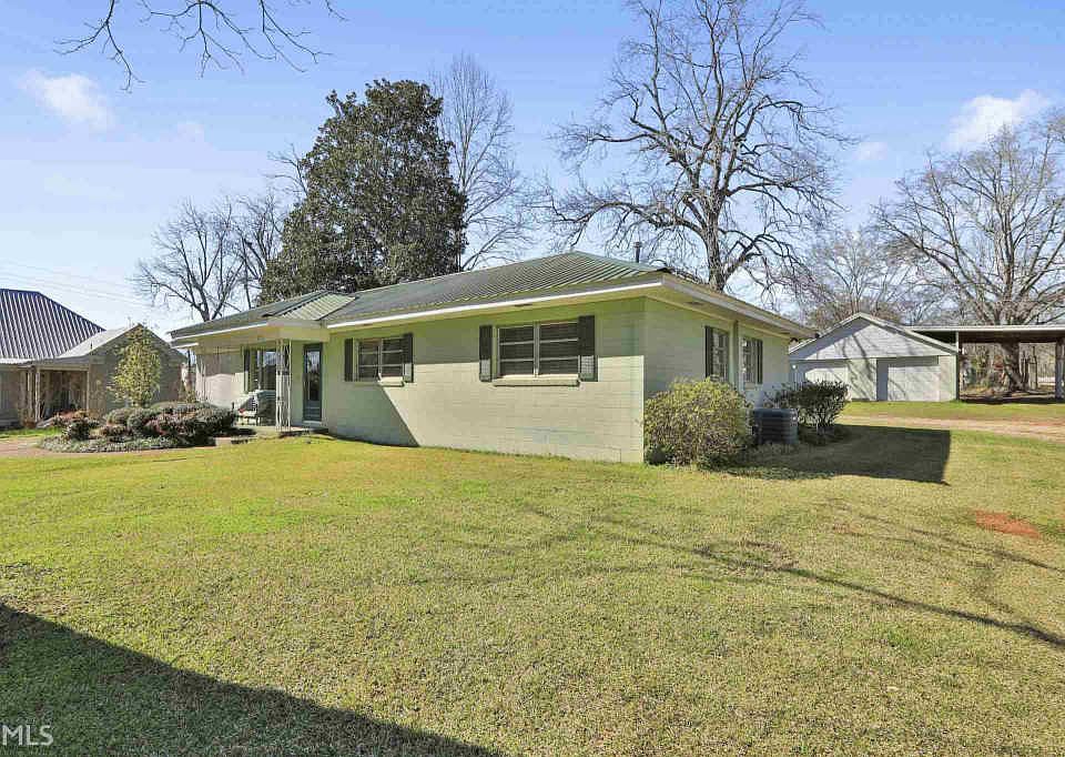 WELL MAINTAINED RANCH IN DOWNTOWN GREENVILLE W/ 1341 SQFT! Enjoy living in quaint small town. Updated electrical & plumbing. New Survey & new paint! Large dining & family rms. Kitchen w/ pine cabinets, S/S appliances. Separate laundry rm. 2 large bedrms & 1 full large bath. Spacious, clean & bright. Enjoy the back patio, quaint yard & small town feel. Detached 2 car auto garage w/ lean to & storage area. Great for storing vehicles, workshop, etc. Can be residential OR commercial. Easy walk to downtown cafe & courthouse. Tin roof, 2 hot water heaters & sunroom area/carport. Dog Pen. Short drive to Warm Springs & Pine Mountain. Ask about Keller Mortgage $0 Lender Fees! $0 Origination Fee! $0 Underwriting Fee! $0 Processing Fee! & Great Low Rate!