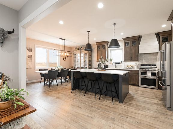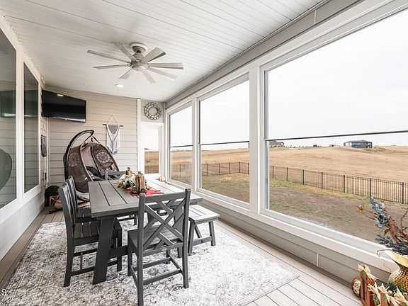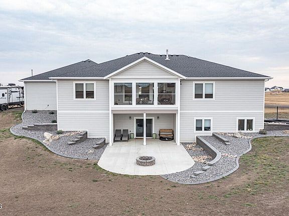 NO SPECIALS, LOW COUNTY TAXES! Beautiful private setting, minutes to Bismarck, and easy access to Hwy 83 and I-94. This stunning 6 bedroom 3 bath home is waiting for you to call it home. The inviting kitchen has great counter space, plenty of cabinets, and a nice pantry for all the extras. Open to the living room, you will be in awe by all the details and the endless views from your living room windows. The main floor boasts the primary bedroom with coffered ceilings and bath with both a soaking tub and custom walk-in shower, 2 additional guest bedrooms and a guest bathroom. Laundry is also conveniently located on the main level. Sellers recently enclosed the deck to create the perfect space to enjoy the views during all of ND's weather. The walk-out lower level has a wetbar, TV room, family room, 3 additional bedrooms (2 with walk in closets), and a bathroom. There are also 2 large storage areas in the lower level. From this level, walk out the patio door to enjoy your ND nights around the firepit with family and friends in your fenced in backyard. The oversized 4 stall garage is insulated, heated, has water and 2 floor drains. Next to the garage is an RV PAD, perfect for your RV, extra vehicles, or those ND toys. The landscaped yard was seeded in the spring and reseeded this fall with rock and boulder landscaping. The adjoining 1.68 acre lot to the west can be purchased for an additional $82k. Taxes per county, sq ft per prior listing.