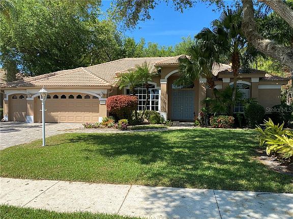 VERY PRIVATE END OF CUL DE SAC LOCATION. PROFESSIONALLY LANDSCAPED, BEAUTIFUL FRONT ELEVATION. WONDERFUL MATURE OAK TREES BEHIND THIS LOVELY HOME. FABULOUS PRIVACY!!! NEW ROOF IN 2011. DESIGNER TILE ACCENT IN THE FOYER, HIGH CEILINGS, LARGE TILE THROUGH OUT ALL OF HOME, EXCEPT BEAUTIFUL BAMBOO FLOORING IN THE OWNERS RETREAT! LIVING ROOM CEILING HAS CUSTOM WAFFLE ACCENT. CHEF'S KITCHEN WITH STAINLESS APPLIANCES, HONEY MAPLE CABINETS AND STONE COUNTERTOPS, BREAKFAST BAR, GOOD MORNING NICHE, A WALK IN PANTRY AND OPENS TO THE FAMILY ROOM. COFFERED CEILING ACCENT IN THE FAMILY ROOM. VERY SPACIOUS GUEST BEDROOMS. OWNERS RETREAT BATHROOM HAS A WALK IN SHOWER AND SOAKING TUB. FABULOUS LARGE LANAI WITH BRICK DECKING, HEATED POOL AND SPA, AND A AMAZING TREED VIEW. IT'S SPECIAL! LARGE GARAGE, 2 CAR PLUS GOLF CART GARAGE.