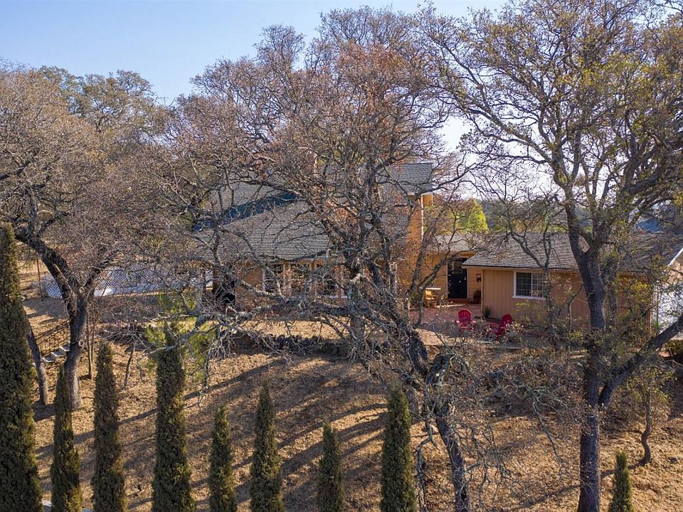 Charming, warm and inviting home with so much to offer! 1422sf, 3/2, one bedroom downstairs with full bath, 2 more bedrooms upstairs with full bath, open vaulted ceilings in GR to upstairs, woodburning floor to ceiling in used brick fireplace, kitchen has been updated with corian counters, center island, lots of room and open to GR, kitchen nook has its own room. Outside has an outdoor kitchen with built in grill, detached large garage, and has laundry room with shower and potty. This could even be converted to in laws quarters possibly! Upstairs overlooks first level. Very charming and unique! Very private setting on a corner lot! Mature landscaping!