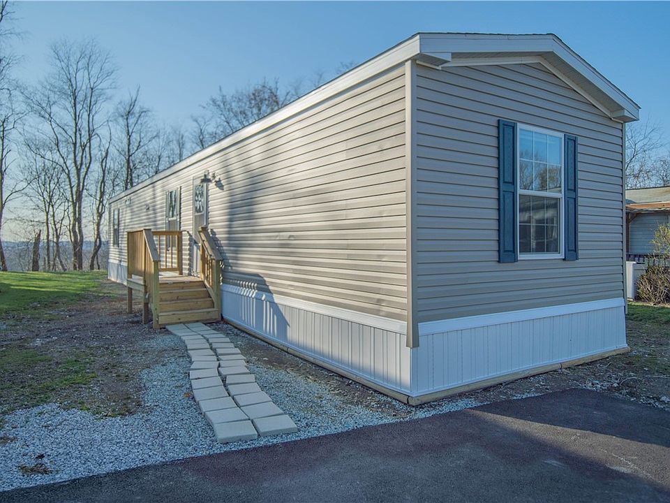 Welcome to your new home in the desirable Suburban Terrace community, conveniently located just minutes from I376 and Moon Township! This brand new 2 bedroom, 2 bathroom single wide offers modern amenities and a spacious, open layout perfect for entertaining. Step inside and you'll immediately notice the well-appointed kitchen, featuring a stove, refrigerator, dishwasher, and microwave oven. The stylish cabinetry and countertops provide ample storage and prep space for all your culinary endeavors. The bedrooms are situated at opposite ends of the home, offering maximum privacy and comfort. The master bedroom boasts an en-suite bathroom with a luxurious shower, while the second bedroom is located adjacent to the second bathroom for easy access. Outside, enjoy the peaceful setting from your own front porch, perfect for morning coffee or evening relaxation. This home also includes a driveway ready to park two vehicles. Don't miss your chance to own this one of a kind home!