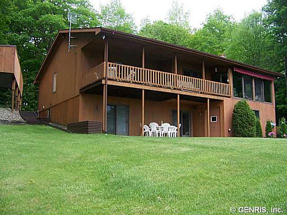 Executive home, Amazing Views, Home features First floor Master suite, with balcony, double closet and a true walk in closet, jetted tub, separate shower and radiant heated floor. Gourmet kitchen with new viking stove, separate jen air counter top grill, top of the line appliances. Vaulted formal living room with gas inserted fireplace, Enclosed (Florida) room to enjoy the views. half bath, Finished basement with family room, patio doors to the covered deck, two generous size bedrooms one w/patio doors to the covered deck. Full bathroom, work shop area w/additional 5x7 overhead door.
