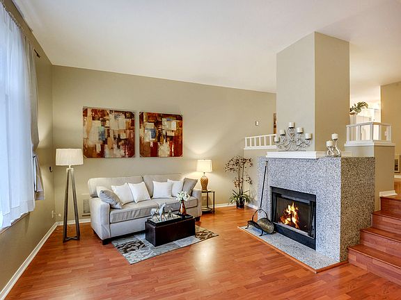 Fresh and crisp,beautifully renewed and updated home, invites you to come see and fall in love. Features include 2 master br, 2 master baths, w/d,on the upper level. Functional kitchen with eating space, dining room, deck and powder room on the main. Living room with a granite fireplace boasts high ceilings and great big windows for all the light you want. Garage for your convenience, 1 parking spot. Quiet and small community of 18 homes tucked away yet close to Freeways,Beach, shopping, Boeing.