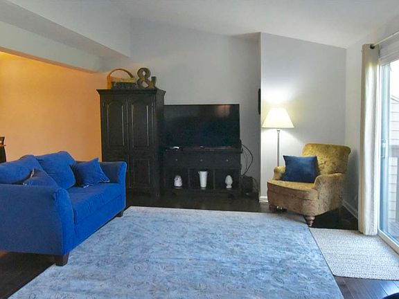 Updated, pristine w/neutral decor, new gleaming hardwood floors, vaulted ceilings, finished lower level w/wood burning fireplace and wet bar, new windows throughout, kitchen w/stainless steel appliances, granite counters-mosaic glass back splash, remodeled master suite w/ walk in frameless tiled shower, crown molding, balcony off living room w/wooded view, fabulous space, low HOA and pool community!