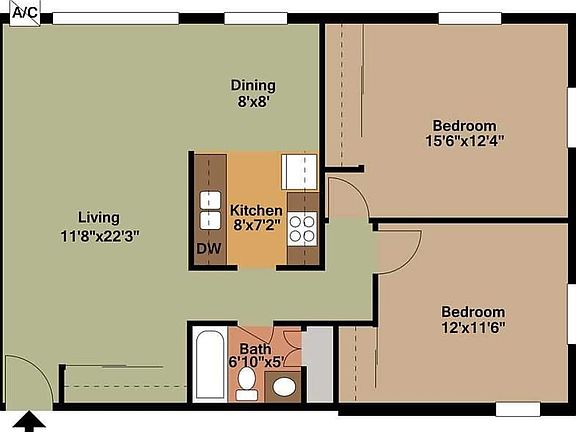 - Bedrooms: 2