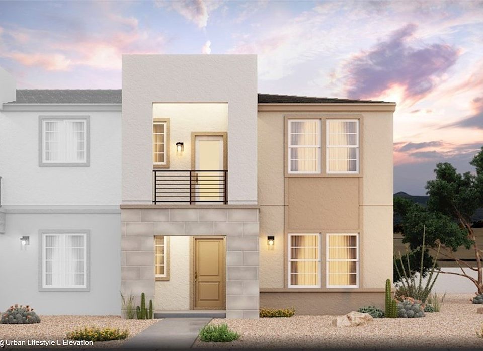 Available for move-in December. Zero down payment, if using VA. Brand new townhomes in the brand new Beazer Homes community of Opal Point. Just a quick drive to the fabulous Las Vegas strip, Allegiant stadium, the new Durango station and surrounded by world class retail shops and restaurants. This 3 bedroom home features primary bedroom downstairs, attached oversized 2 car garage, an open layout with premium Pebble (gray) cabinets and Frost Quartz countertops throughout. spacious pantry, tile floors, and stainless steel appliances. This home has an included covered porch and balcony. Photos and 3D tour are of the model home. HUGE December rate buydown incentives! Rates as low as 4.99%