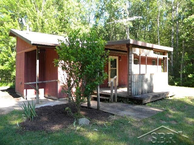 Located on 10 wooded acres south of Merrill, MI is this 1997 built 1 bedroom home with a large garage structure that has partially finished area above the garage. The home has 1 bedroom, and lots of potential for you to finish it.