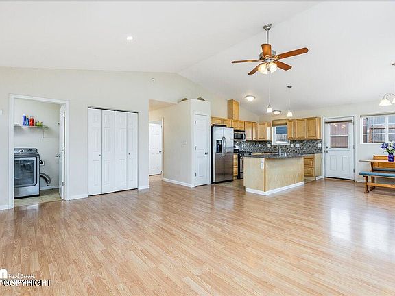 SAND LAKE RANCH next to Sandhill Reserve! Enjoy the luxuries of living just steps away from lake access at an affordable price! Bright & sunny ranch-style home in south Anchorage. Open concept floor plan. Beautiful kitchen w/ stainless steel appliances & cozy fireplace in the living space. Mountain views from vaulted ceiling livingroom. Big fenced-in backyard & RV parking on side driveon side drive next to large shed.