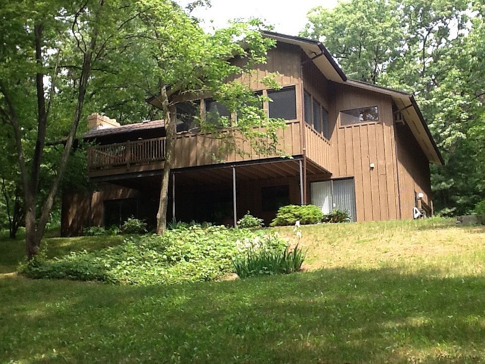 Secluded hideaway surrounded by The Brighton State Recreation Area. Steps away from miles of hiking and biking trails. 4.95 wooded acres. Huge great room with cathedral ceilings and wood burning fireplace. Most new carpet throughout. Natural gas to a newer 3 zone quiet hydroponic boiler system. Huge master suite w/ample closet space. Mingle with all of the wildlife, fox, deer, owls, and more. Elevated screened in porch and deck overlooks the woods. Full finished walkout with two bedrooms full bath and recreation room.