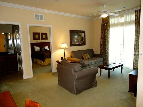 Back on the market and priced to move. This is a wonderful 2 bedroom condo, zoned for short term rental in the Heart of the Champions Gate area. The unit is turnkey and managed by Aston, all the guess work is taken out. The building is equipped with elevators for easy access to the unit and there is a full staff onsite. This is a beautiful resort with pool, tiki bar, exercise facility, and shaded cabanas all included with your dues. The current owner has installed all new flat screen Tv''s and everything in the unit will convey to the new owner.