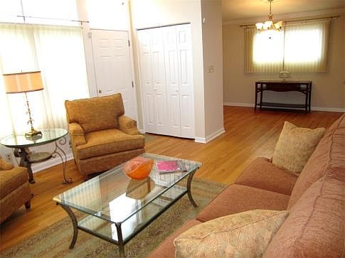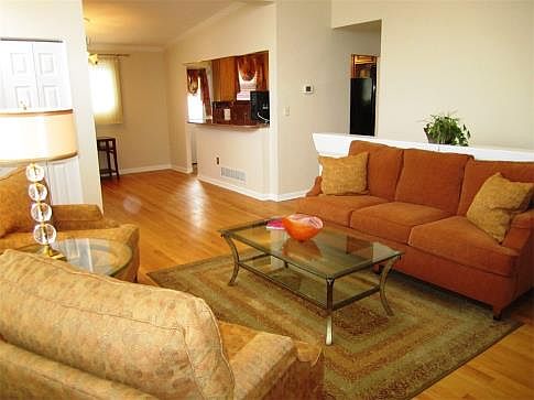 Gorgeous duplex in Chartwell features sun-filled living room with wall of windows, dining room and gourmet kitchen featuring granite counters, breakfast bar & tile floors. Beautiful wood floors are offered throughout main level. Master suite has a private bath. Finished lower level with recreation room, additional 4th bedroom, full bath, laundry/storage area and walkout to rear yard combine to make an excellent use of space. Custom deck off kitchen is great for outdoor dining, entertaining or just relaxing. Enjoy being close to shopping, metro and commuter routes.
