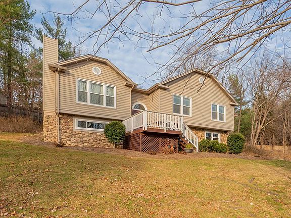 Nestled in the beautiful Blue Ridge Mountains, this move-in-ready, meticulously maintained home sits on one private acre in the desirable Forest Edge subdivision—offering peaceful, rural living just minutes from city conveniences. Thoughtfully updated throughout, the home features a fully renovated kitchen with modern cabinetry and finishes. Both bathrooms have been refreshed, including brand-new vanities and a luxurious walk-in tiled shower in the primary suite. The main level offers three spacious bedrooms, while the lower level includes a cozy family room and a fourth non-conforming bedroom. The basement is also plumbed and ready for an additional bathroom, providing excellent potential for future expansion. A thermostat-controlled gas-log fireplace brings warmth and comfort. The updated lighting brightens the home's stylish interior. Step outside to the private deck, an ideal spot for gatherings or simply relaxing while taking in the mountain surroundings.