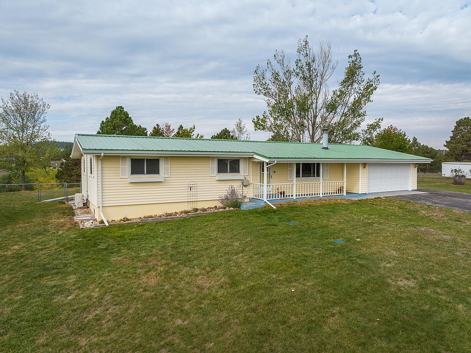 Listed by Lonnie Doney, KWBH, 605-407-1048. Ranch style home with a full basement on a prime 1.23 acre lot in the desirable Whispering Pines Subdivision! *4 bedrooms, 2 bathrooms and 2,496sqft *Comfortable living room with vaulted ceilings, laminate flooring, a corner built in and a large picture window overlooking the front yard *Galley style kitchen with ceiling height cabinetry, double ovens and a built in cooktop *Cozy dining area with access to covered back patio *2 large bedrooms on main level- both with large closets, half-vaulted ceilings and their own mini-split AC unit *Basement level is ready for you to customize- with the addition of 3 new egress windows you could reconfigured this space as you wish! Currently has a good size family room with corner woodburning fireplace (never used!), 2 bedrooms, 1 full bathroom and a 9'x7' storage room *Outside has an attached 2-car garage and ample space for boats, RVs or a second garage/shop building *Covered back patio overlooks the fully fenced back yard with mature trees for shade and privacy and has great views of the neighborhood and the Black Hills *Covered front patio gives views of the cul-de-sac. Located approx. 10 minutes to BH Energy Campus, 15 minutes from Monument Hospital and easy access to the Black Hills- call today!
