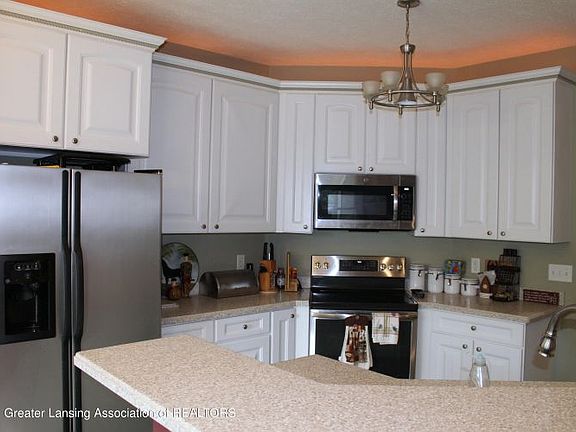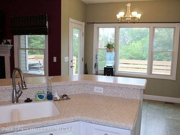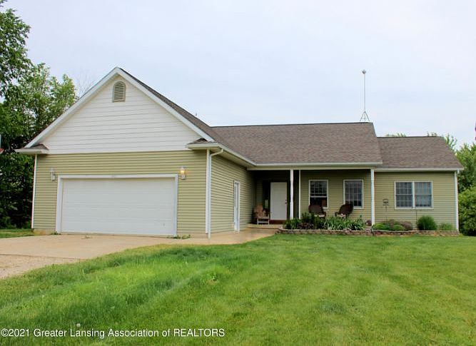 Situated perfectly between Battle Creek, Hastings and Charlotte- this custom home, built in 2000, has everything you need to enjoy life out of the big city! The open floor plan combines the living room, dining room and kitchen with defined spaces that connect and flow. The 9ft ceilings and cathedral living room provides a spacious feeling with a gas fireplace at the center. Enjoy the formal dining or be more casual at the kitchen nook or choose the bar seating for those quick meals on the go. The primary suite has space for king bedroom furniture, a sitting area, large walk-in closet and showcases a ''wow'' custom tile shower with a variety of shower heads and spray choices. The opposite end of the house contains 2 more bedrooms and a full bath. The lower level is completely finished with