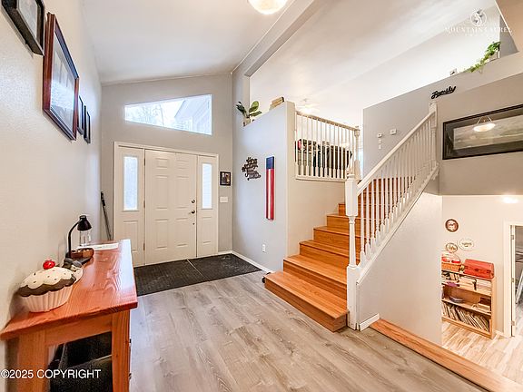Spacious home in excellent area! Home sits on 2 acres with mountain views just minutes from Palmer, Hatcher Pass, & Government Peak Rec. area. Lots of updates (new roof, boiler, 2024 flooring, tile, & more). Additional family room, and bonus room that could be used as a 5th bedroom (needs egress window). Pellet stove for additional heat source. Lots of storage!