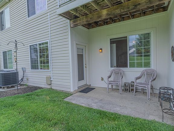 Rare opportunity to own a true NO STEP condo! This home is very well suited for those with mobility issues. Roll in entrance from both garage and at front door. Smooth hardwood floors throughout main portion of unit (Entry, dining, living and hallways). Garage entrance directly into home. New Water Heater and 5 year old HVAC keep future costs limited. Enjoy the convenient location close to groceries, golf course, airport and shopping! Community has pool and clubhouse and beautiful landscaping.WATER AND SEWER ARE INCLUDED IN HOA FEE!