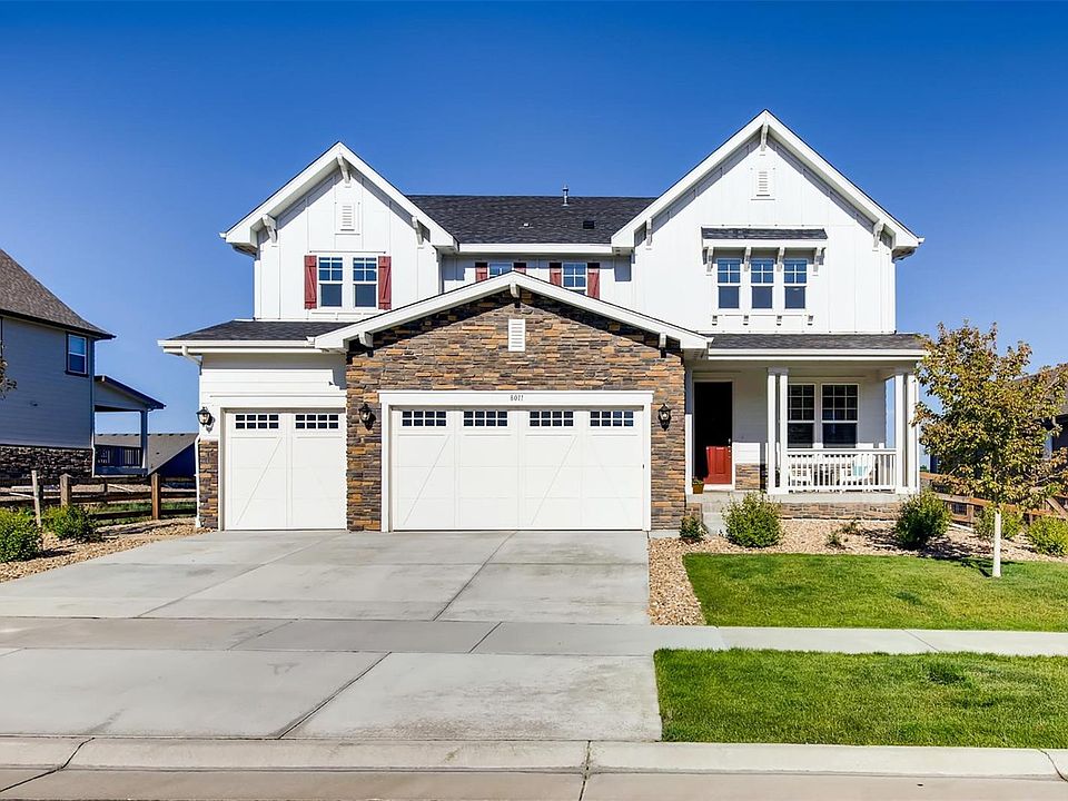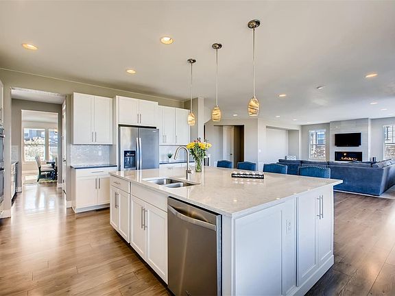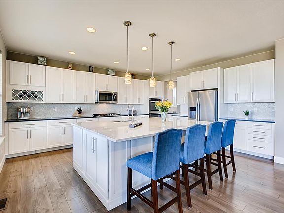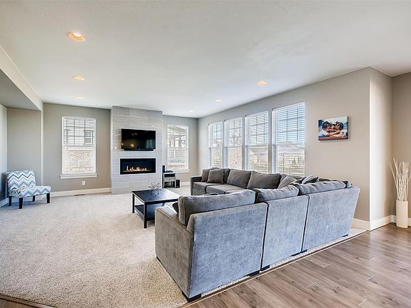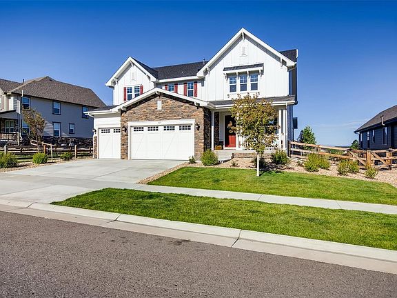 Welcome to The Estates at Ponderosa Ridge.This like new home has been meticulously kept and has over 140K worth of custom upgrades including a gourmet kitchen with double island with extra cabinets,42inch upper cabinets, dovetail soft close drawers, quartz countertops, stainless steel appliances and a butler's pantry. 8 ft doors, auto sensor toilets, contemporary glass fireplace the list goes on! Main floor features a full bath and a bedroom which can also be used as a study.Second floor features the master bedroom with vaulted ceiling, huge loft space for relaxing and a large laundry room with sink. This beautiful 6 BR/5BA home has a bright and open floor plan with mountain views. Enjoy the sunset while grilling on the covered back deck. Professionally landscaped fenced yard includes a kids play set. Fully finished basement with 9 ft ceiling, wet bar, extra storage and a bedroom and bathroom. Coveted Cherry Creek Schools and quick access to E470 toll.