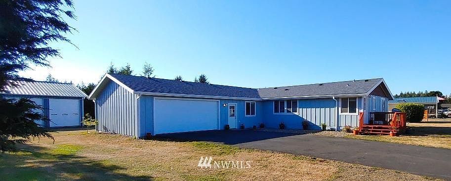 Focus Eastward on the Pacific Flyway to view migratory waterfowl or hummingbirds seasonally and the hills beyond all year long from the front deck.Property is just under an acre.Three bdrm., two full bath 1536 sq. ft. home is enhanced with living space built into 900 sq.ft. garage. Park two vehicles, use workshop space, plus a garage conversion for games room/ home theater (?)or extended sleeping area. Pellet stove in the home+ new flue ready for a wood or pellet stove in the game room.Wide open kitchen and dining room. Make plans to use the 1440 sq.ft. pole barn SHOP! Work in any weather w/ heated poured concrete shop floor. Park RV's, boats or vehicles in your new Monster-shop, or (6?)vehicles (end to end). Partially fenced.New roof 2020.