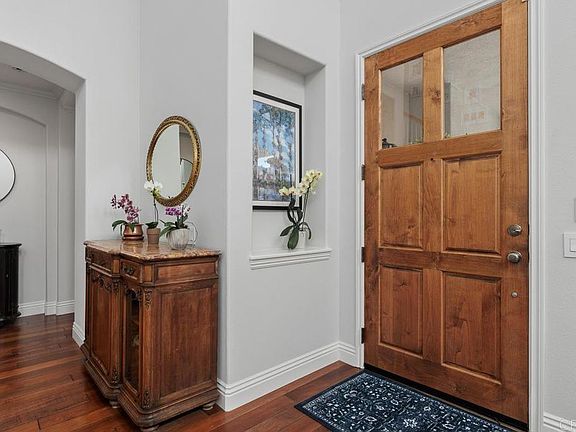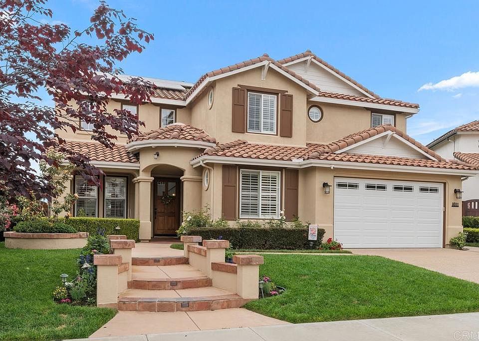 Exceptional La Costa Valley home that features panoramic sunset views to the west and a coveted cul-de-sac location. This stunning home is light and bright and has been extensively updated throughout. The versatile floor plan includes formal living and dining rooms with French doors, gourmet kitchen with breakfast area that opens to the family room with custom media center and lovely stone fireplace. Executive office, bonus room (can be converted to BR5), and bath on 1st floor. Upstairs discover a spacious and private primary suite with walk-in closet, retreat, large balcony with panoramic sunset views, and beautifully updated bath with custom walk-in shower. Additionally the upper level includes three bedrooms, one bath and computer station. Upgrades include custom built-ins throughout, crown molding, wide plank floors, wide baseboards, hardwood floors, plantation shutters, dual A/C, and paid solar. Laundry room and garage have tons of storage. Enjoy year-round alfresco dining in the tranquil and beautifully landscaped yard with BBQ island, stone fireplace, and spacious patios that capture u stunning westerly views. The fantastic locations is a short walk to award winning El Camino Creek Elementary School, and the Valley Club that offers lighted tennis courts, Jr. Olympic sized pool, spa, workout room, and clubhouse. Located in the Encinitas/San Dieguito School districts, and minutes to the Carlsbad Forum shops, restaurants, freeway and some of California’s most beautiful beaches. The ultimate Southern California lifestyle awaits!