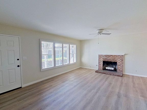 Presenting this roomy 3-bedroom, 2-bath single-family residence with a spacious backyard, ready for you to move in right away! This home boasts charming curb appeal, complete with an attached two-car garage and a delightful front lawn. As you step inside, you'll find a bright and airy living room featuring a cozy brick fireplace. The kitchen is a chef's dream, showcasing elegant white hardwood cabinets and ample counter space, including a bar-style seating option. It's also equipped with top-of-the-line appliances, such as a stainless steel refrigerator, dishwasher, stove/oven, and microwave. The property offers an open layout that flows seamlessly into another expansive living room, ideal for entertaining friends and family. The two guest bedrooms are generously sized, each with closets that can hold your entire wardrobe. The guest bathroom features a stunning tile shower and a single vanity with attractive lighting. The large master bedroom is very spacious, featuring two closets with plenty of storage for your wardrobe, along with an en-suite bathroom that includes a beautiful tile shower. Additionally, the property boasts a large backyard with a patio area, perfect for outdoor furniture and enjoying the fresh air, as well as a grassy space.