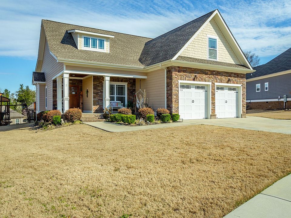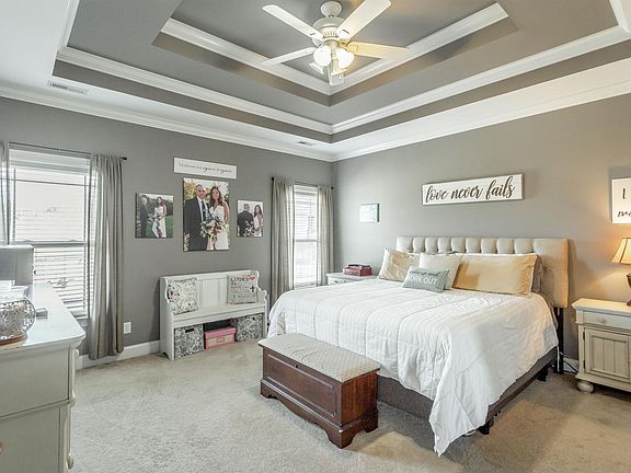 Beautiful open spacious floor plan with stone fireplace and specialty ceilings. Living room, formal dining and kitchen all open. Master bedroom and en suite on main level. Two additional bedrooms on main floor. Upstairs has 4th bedroom, full bath and bonus room for additional living space. The screened in porch is great for relaxing and watching the scenic view. Outside firepit patio great for entertaining. Lovely fenced in backyard. So many special features come with this beautiful home.