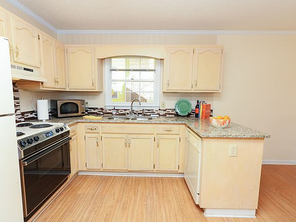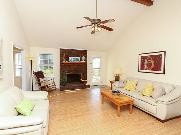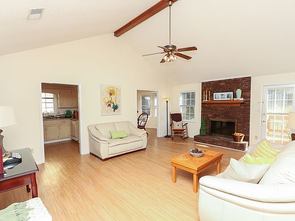 CHARMING 3 Bedroom/2 Bath Ranch home with cathedral ceilings, open floor plan, wood burning fireplace and large recreation room. NO HOA! Updated Kitchen with new granite counter tops and under mount sink, fresh paint throughout and new floors. Kitchen opens into breakfast room with bay window. Brick Fireplace with wood mantle. Outside: Entertaining deck, storage building, and 2008 Roof with architectural shingles.