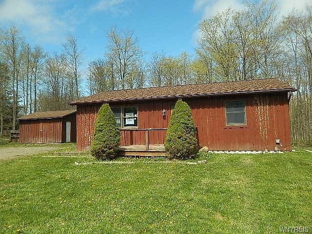 PRICE REDUCED! **HUD HOME!** Come check out this charming all wood ranch. A large open living space, 1st floor laundry and 2 generous sized bedrooms. Enjoy solitude on your large deck overlooking the 3 acres of property!