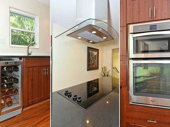 This lovely Siesta Key home, updated with contemporary upgrades, exudes a comfortable and charming feel. Situated on Heron Lagoon, this home provides superbly shaded sidewalks and bike lanes that make walking or cycling to the beach fun, safe and easy. This special home has wood and travertine floors, great open spaces, new gourmet kitchen and granite counters, stainless appliances, and huge center island. The luxurious master suite has spectacular sunset views over Heron Lagoon as well as a new master bath with granite, a skylight, and walk in shower. Additional spacious bedrooms and two new bathrooms provide plenty of room for your family and guests. Additionally, this home has a large family room and a den on each level, both with large glass sliding doors that lead to an outdoor playground. A new (Mar 2015) gas-heated saltwater pool/spa and a deck of cool sandstone pavers are enclosed within a new two-story 20/20 screen that provides protection from both insects and harmful UV rays. A large balcony leading from both the great room and master suite is also within the enclosure. The entire backyard is surrounded by a new 6-foot privacy fence. Your backyard playground is completed by your own dock on the lagoon for kayaking, fishing, paddle boarding, or swimming. There are new plantation shutters throughout, hurricane windows, hurricane rated garage doors, new A/C, new roof & gutters, new cabinets and appliances, and the list goes on. Garage is large enough for 3 cars plus ample space for a work area.
