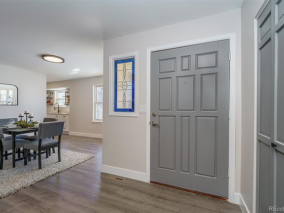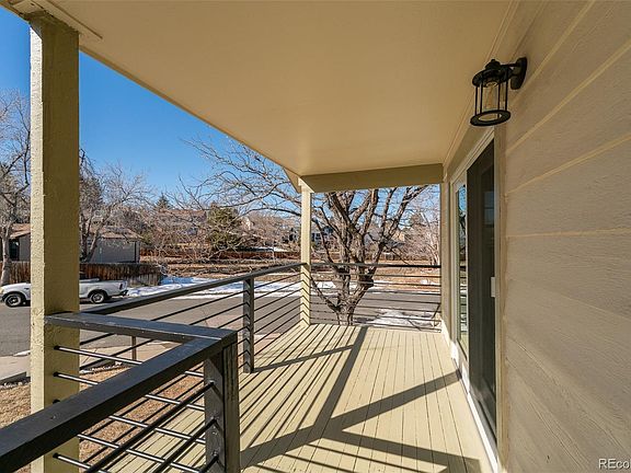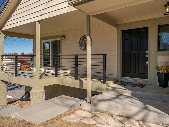 Come and see this light-filled home in the middle of the highly desirable Foxridge neighborhood! This four-bed, three bath home has been updated with soft-close white cabinetry, stainless steel appliances, quartz counters and luxury vinyl flooring. The vaulted family/living area features a double-sided gas fireplace. The open kitchen comes with a pantry, open shelving and a modern butcher block island. The generous primary bedroom has a front deck with views to an open area across the street. Both the primary bath and the main bath feature marble-look, large tile shower surrounds and quartz counters on the vanities. The oversized two-car garage opens into a landing area, with a large closet ideal for storing all your gear, and a separate utility room. The lower bedroom would make an excellent guest area, office or exercise space. The back yard is low-maintenance but has room for pets, kids or garden. The Foxridge neighborhood has lovely walking trails (one right across the street). Cherry Creek High School is the home school. Located close to the shopping and dining of Park Meadows and a very short hop to C-470 and I-25.