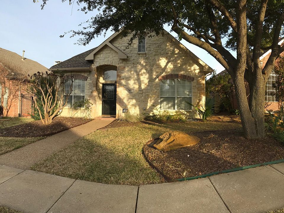Best house in neighborhood! Single story, zero lot home, with stone veneers & extended back patio, real hardwood floors, 12' ceiling, crown molding, french doors in study, plantation shutters, fireplace with mantel, corian countertops, gas range, built in microwave, newer dishwasher 2018, jetted tub, 2 car garage, water heater 2017, rear alley entry, hail resistant roof. Refrigerator, washer & dryer included! One year plus. Tenant responsible for utilities