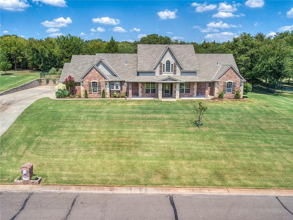 Perfect east Edmond home with STUDY AND BONUS for these work from home/virtual learning times! Wonderful wooded acreage with 3 beds down, 2 full and 2 half baths and a 3 car garage on 1.39 acres. Incredible location with easy access to I-35, shopping and dining. You'll find a TON of storage throughout and walk-in closets galore. Study has a nice closet and the upstairs two-level bonus room has a convenient half bath and great storage. Natural light fills the entire home, amplifying the open floor plan with its great dining space in the main kitchen. Multiple covered back patio spaces all overlook the AMAZING backyard landscape including a long, gorgeous boulder wall that spans multiple levels. And did we mention the amazing pond view from the front porch? This home boasts an over-sized garage with an in-ground storm shelter and new carpet throughout.