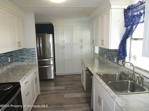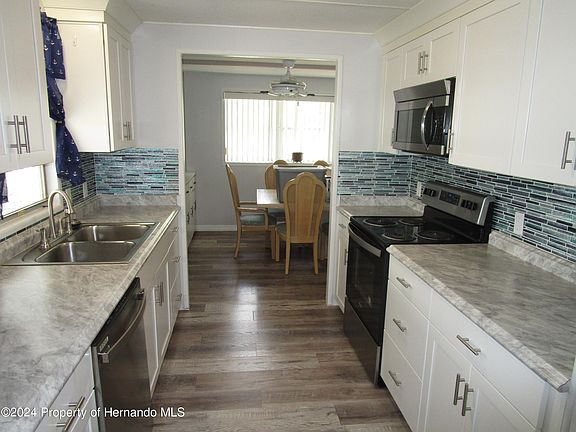 Clean home with lot of upgrades , new cabinets and counters and appliances in the kitchen. 4 season porch off the living run. Second bath redone with new vanity and a stall shower. Large shed with golf cart garage and laundry. Beautiful heated pool in the back yard, come and enjoy Brookridge where you own your land in style.