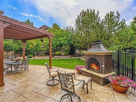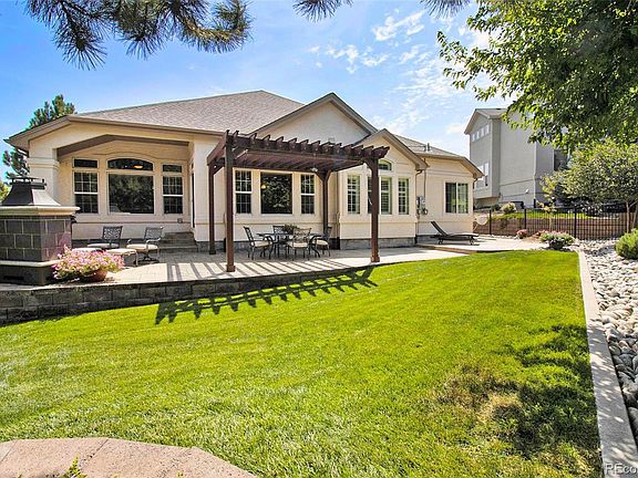 A rare opportunity to call this meticulously maintained model quality ranch style home..yours! Perfectly perched on one of the most beautiful and professionally maintained lots in Blackstone Country Club, this spectacular home is loaded with fine features and quality upgrades. You will love the elegant entry with a stone retaining wall, Stucco exterior, and an extended covered front porch. Upon entry you will immediately be immersed in true elegance and peaceful tranquility with soaring ceilings, dramatic architecture, and a true open floor plan. The gourmet kitchen is a Chef's dream with a perfect combination of Granite counters, stainless steel appliances, gorgeous cabinetry, custom backsplash, gas cooktop, extended hardwood floors, and more - Spectacular! The spacious family room has an abundance of windows that floods the space with natural light and perfectly frames the amazing outdoor living space. The main floor living areas are complete with a formal living room with 3-sided fireplace, dining room, private study, guest bathroom, and convenient laundry. The luxurious and relaxful primary suite features a cozy gas fireplace and spa-like en suite with a double vanity, walk-in shower with body jets, and more! There are two additional bedrooms and a full bathroom. The professionally finished basement is an entertainer's dream. This amazing space features a theater area that is anchored by a stone faced corner gas fireplace, billiards/game room, bedroom, flex room, full kitchen, and huge storage space. The outdoor space is second to none! The expanded 58X15 reinforced stamped concrete patio with a custom pergola and stone-faced fireplace will dazzle you and your friends in all seasons as you relax or entertain and take in the park-like setting. Other features include a structural cement basement floor system, central vacuum, Over-sized 3 car garage, energy efficient Solar Panels, resort-like community amenities. Close to E470, Southlands, and Cherry Creek Schools!