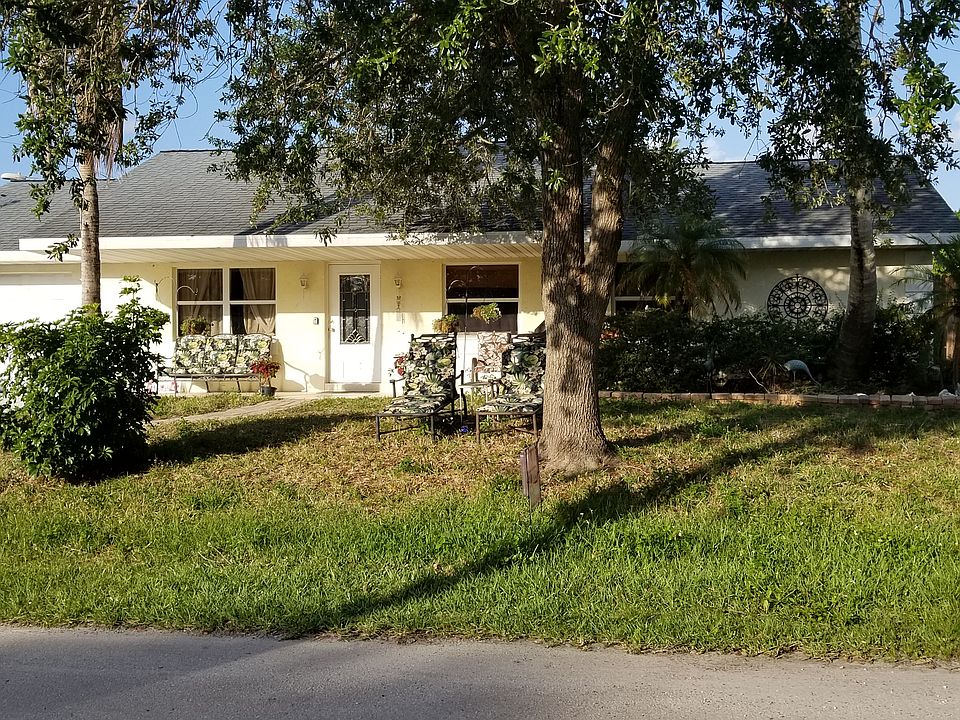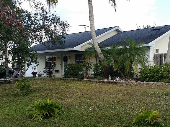 Treat yourself with home-grown organic food straight from your own back yard garden. Breakfast with tasty free-range chicken eggs. Relax in this Key West Style home on large corner lot! Strong CBS Block home. No HOA! 4 bedrooms & 2 baths. Cathedral ceilings with 2 vaulted & domed skylights (over the kitchen & over master bathroom) open & spacious floorplan, large light-colored Mexican tile in living, dining, kitchen, & hallway. All other rooms are either large tile, marble, or wood laminate flooring. No carpet! Modern kitchen with granite-like countertops, custom spice rack, custom décor, under cabinet lighting & stainless steel appliances including French door refrigerator with ice maker & smooth cooktop stove. Master bedroom features crown molding & lovely glass-paned door leading to the backyard. Master bathroom features his & hers sinks (and vaulted skylight overhead), guest bathroom remodeled with marble flooring, granite countertop, textured walls, crown molding & diamond pattern tiled shower. Separate laundry room with lots of cabinetry & newer washer & oversized dryer for those large comforters. Large attic with pull-down step ladder. Sliding doors lead out to the extra large covered & screened lanai (approx. 250sqft) great for entertaining your guests. Or relax on a large covered front porch a& the shady oak tree!