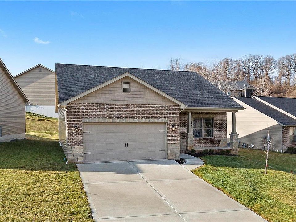 This beautiful, maintenance-free villa with 2 bedrooms and 2 full baths is available now! Built by KC Construction in the 55+ community within the Tanglewood subdivision, you will immediately recognize the quality construction this builder is known for. Open concept with floor-to-ceiling stone fireplace, 42” soft close kitchen cabinets, granite tops, and LVP throughout the main floor. The primary suite includes an oversized shower & large walk-in closet that opens to the laundry room. Covered deck, huge unfinished basement with bath rough-in, egress, & more. $125/m HOA fee covers lawn care, snow removal, front irrigation, & seasonal yard clean-up. Enjoy this picturesque neighborhood with nature paths, walking trails, playground, & stocked ponds. Convenient to freeways and approximately 20 minutes to St. Louis and Scott AFB.