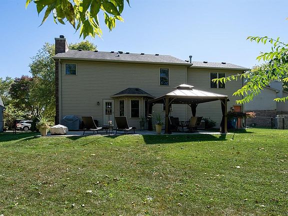Fenced backyard with mature trees. The open paver patio and brand new 12 x 12 gazebo make for fun and entertaining. The kitchen and nook are open to the great room with a brick fireplace and Easy access to the patio for grilling. The main level den is bright and cheery and has glass french doors. 2-story entry with hardwood floors throughout most of the M/L. Upstairs 4 bedrooms all generous, 4th bedroom is being used as a bonus room. Cathedral ceilings in the owner's bedroom plus it has a corner tub, sep shower, dual sinks, and a W-I closet The two-car garage has ample storage and a service door to the backyard. New water softener stays. Water Heater less than 3 yrs.