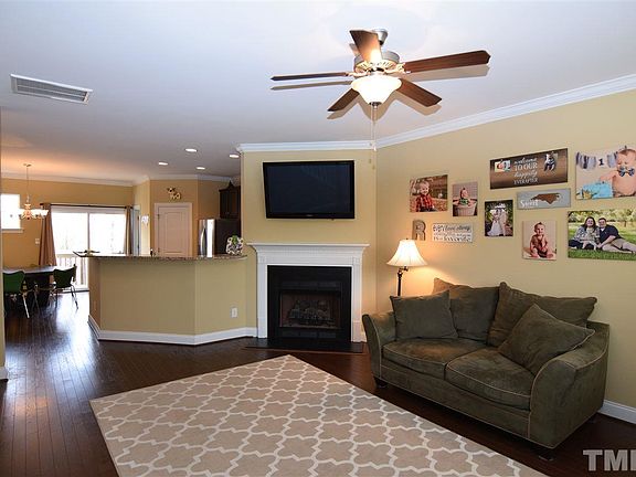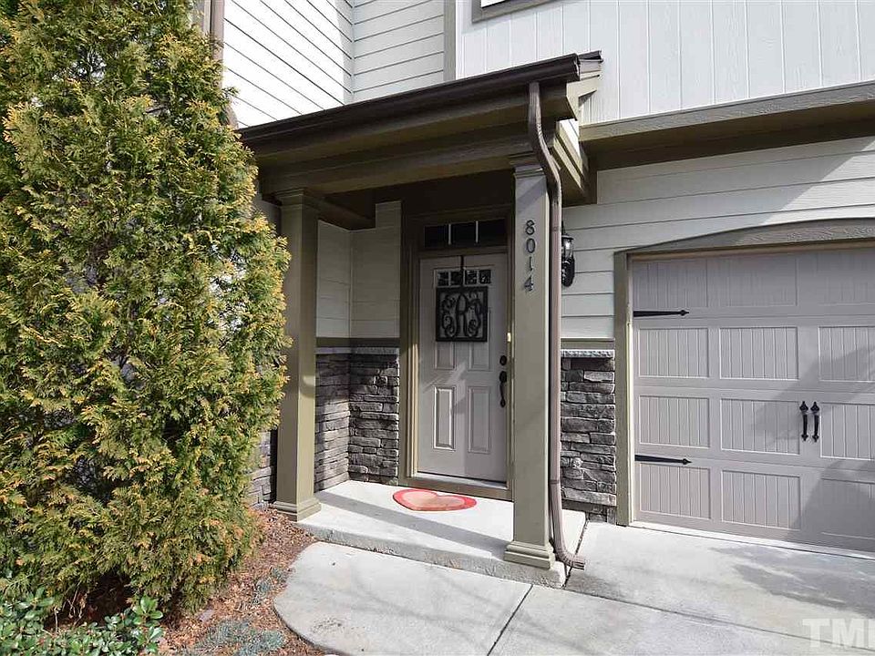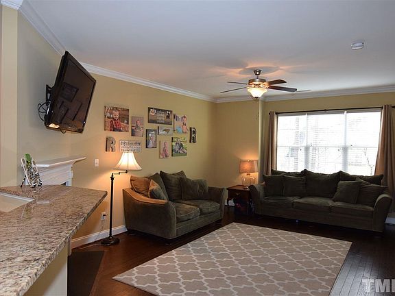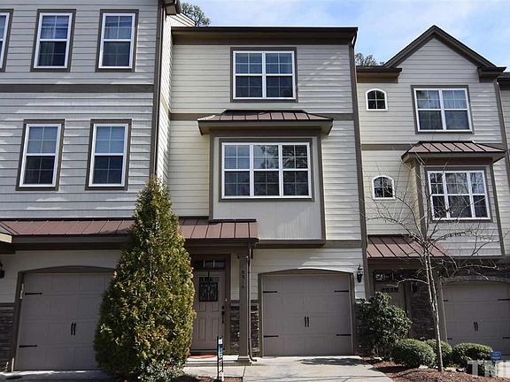 Tucked away in North Raleigh this town house affords a lot for a little! Granite counter tops, hardwood floors, 42" kitchen cabinets, SS appliances, crown molding, recessed lighting, gas log fireplace in living rm, master bath w/ separate garden tub & walk in shower. Each bedroom has its own bathroom! The main floor has a great open flow & a guest bath. Enjoy quiet evenings on the deck. At this price, it's hard to find a town house with all these features & a garage!