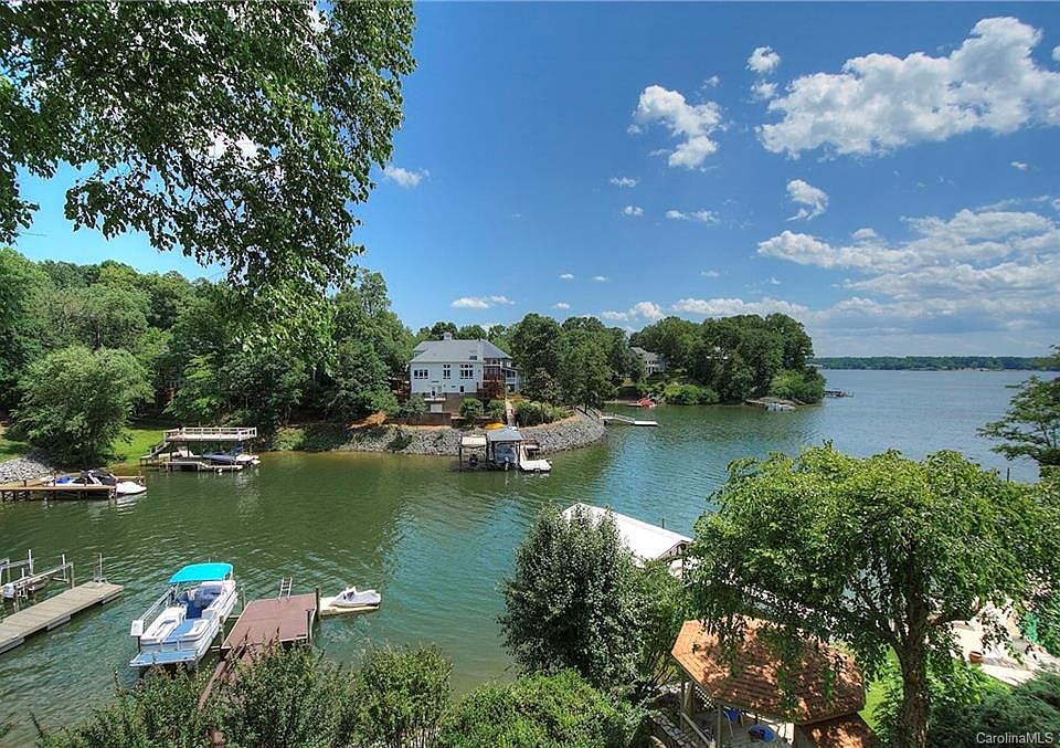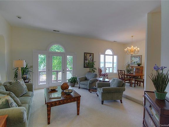 Tega Cay waterfront home with apartment for extended family or pampered guests! Main channel sunset views for miles from this 3-level home. Main level has kitchen w/ hearth room, formal living & dining, plus master and 2nd bedroom. Lower level designed for entertaining w/ 2nd kitchen, billiards, rec room, 2 bdrms, plus spacious cvrd porch for outdoor living. Apartment level has 2 bedrooms, kitchen, living room and private deck! Even more space (unfinished) above 3-car garage. Dock & boat lift.